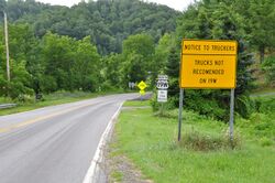 State weight and length limits (which may be lesser or greater than federal limits) affect the only operation of the NN. There is no federal height limit, and states may set their own limits which range from 13 feet 6 inches to 14 feet.[39] As a result, the height of most tractor/trailers range between 13' and 15'. States considered to be in the eastern half of the United States use 13'6" as the maximum height. The boundary states are Minnesota, Iowa, Missouri, Oklahoma (the only state west of the north/south line), Arkansas, and Louisiana. States west of these have maximum heights of 14', with the exception of Colorado and Nebraska, which have a maximum height of 14'6". Alaska has a maximum height of 15'.[40]