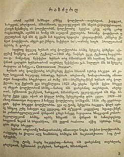 In 1820, I. Yalguzidze published a Georgian-script alphabetic primer, adding three letters to the Georgian alphabet.[43] The Georgian orthography receded in the 19th century, but was made official with Georgian autonomy in 1937. The "one nation – two alphabets" issue caused discontent in South Ossetia in the year 1951 demanding reunification of the script, and in 1954 Georgian was replaced with the 1937 Cyrillic alphabet.