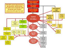 Following the persecution of Falun Gong in 1999, Chinese authorities sought to portray Falun Gong as a hierarchical and well-funded organization. James Tong writes that it was in the government's interest to portray Falun Gong as highly organized in order to justify its repression of the group: "The more organized the Falun Gong could be shown to be, then the more justified the regime's repression in the name of social order was."[131] He concluded that Party's claims lacked "both internal and external substantiating evidence", and that despite the arrests and scrutiny, the authorities never "credibly countered Falun Gong rebuttals".[132]