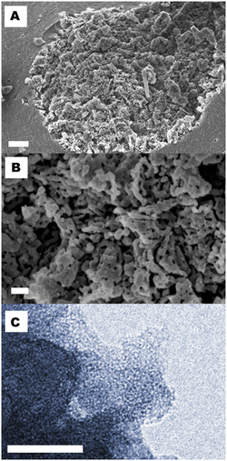 MMCs are composed of an X-ray amorphous and mesoporous MgCO3 matrix with crystals of MgO embedded in the structure.[3] The synthesis route described above generally produces MMC particles in the millimetre to centimetre range, particles that can be reduced in size if desired.[6]