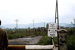 To address some of the problems with land-mines (see § Drawbacks), weapons manufacturers are now experimenting with area-denial weapons which need human command to operate. Such systems are usually envisioned as a combination of either explosives, pre-targeted artillery shelling or smartguns with remote sensing equipment (sound, vibration, sight/thermal). By not posing a long-term risk, and by having some level of IFF capability (automatic or human-decision-based), these systems aim to achieve compliance with the Ottawa Treaty, as for example the Metal Storm ADWS (Area Denial Weapons System).[4]