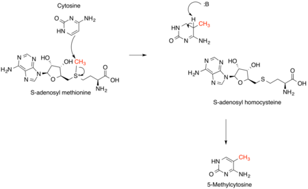 Alkylation in biology causes DNA damage. It is the transfer of alkyl groups to the nitrogenous bases. It is caused by alkylating agents such as EMS (Ethyl Methyl Sulphonate). Bifunctional alkyl groups which have two alkyl groups in them cause cross linking in DNA. Alkylation damaged ring nitrogen bases are repaired via the Base Excision Repair (BER) pathway.[10]