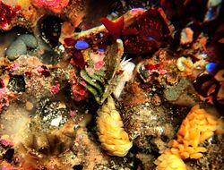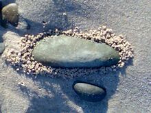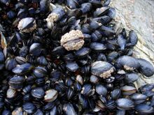 Since the foreshore is alternately covered by the sea and exposed to the air, organisms living in this environment must be adapted to both wet and dry conditions. Intertidal zone biomass reduces the risk of shoreline erosion from high intensity waves.[4] Typical inhabitants of the intertidal rocky shore include sea urchins, sea anemones, barnacles, chitons, crabs, isopods, mussels, starfish, and many marine gastropod molluscs such as limpets and whelks. Sexual and asexual reproduction varies by inhabitants of the intertidal zones.[5]