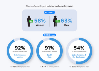 In developing countries, the largest part of informal work, around 70%, is self-employed. Wage employment predominates. The majority of informal economy workers are women. Policies and developments affecting the informal economy have thus a distinctly gendered effect.