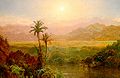 From Conservapedia Frederic Edwin Church (1826 – 1900) was an American landscape painter. He was a pupil of Thomas Cole and heavily influenced by J M W Turner (known in this encyclopedia as William Turner). He painted the mountains of New England, the tropics, the rivers, waterfalls, and volcanoes of the Andes (Chimborazo, Cotopaxi, and Sangay), the sunlit landscapes of America, the icebergs of the far North, the coast of Maine, Europe and the Middle East. Church, at the end of his active painting career, like many American painters in the last decades of the nineteenth century, sought through light a poetic unity in place of a scientific one based on a painstaking detailing of the physical world. [1] He laid the foundation for the post-Civil War generation of landscape painters, among them Albert Bierstadt and George Inness. [2]