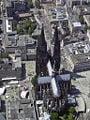 A "Bird's eye view" of the Dom from the east shows the cruciform plan, the proportion of the spires to the building and the radiating buttresses of the east end.