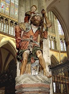 The choir retains a great many of its original fittings, including the carved stalls. A 12.5 foot stone statue of Saint Christopher looks down towards the place where the earlier entrance to the cathedral was, before its completion in the late nineteenth century.