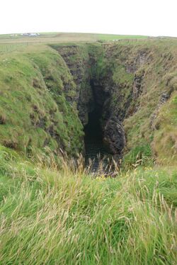 The Gloup (grid reference HY591078) is a collapsed sea cave in the Mull Head Nature Reserve in the islands of Orkney, Scotland.
