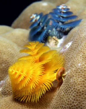 Christmas tree worms (Spirobranchus giganteus) from East Timor. These are small, tube-building polychaete worms.