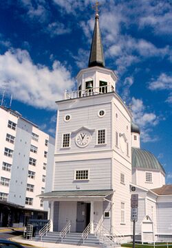 In 1867, William H. Seward, the United States Secretary of State under President Andrew Johnson, negotiated the Alaska Purchase, referred to pejoratively as Seward's Folly, with the Russians for $7.2 million.[16] Russian emperor Alexander II also planned the sale.[17] The purchase was made on March 30, 1867. Six months later the commissioners arrived in Sitka and the formal transfer was arranged. The flag-raising took place at Fort Sitka on October 18, 1867. In the ceremony, 250 uniformed U.S. soldiers marched to the governor's house at "Castle Hill", where the Russian troops lowered the Russian flag and the U.S. flag was raised. This event is celebrated as Alaska Day, a legal holiday on October 18.