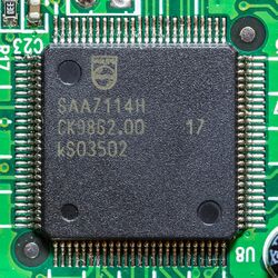 A video decoder is an electronic circuit, often contained within a single integrated circuit chip, that converts base-band analog video signals to digital video.[1] Video decoders commonly allow programmable control over video characteristics such as hue, contrast, and saturation. A video decoder performs the inverse function of a video encoder, which converts raw (uncompressed) digital video to analog video. Video decoders are commonly used in video capture devices and frame grabbers.