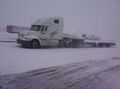 Freightliner Columbia with single drop flatbed (also known as a stepdeck) trailer