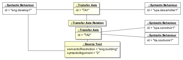 Within the context of a multilingual database comprising more than two languages, usually the multilingual notations are factorized, in order to save the number of links. In other terms, the multilingual notations are interlingual nodes that are shared among the language descriptions.