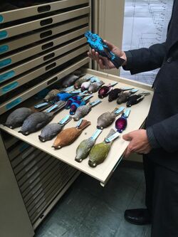 The earliest approaches to modern bird study involved the collection of eggs, a practice known as oology. While collecting became a pastime for many amateurs, the labels associated with these early egg collections made them unreliable for the serious study of bird breeding. To preserve eggs, a tiny hole was made and the contents extracted. This technique became standard with the invention of the blow drill around 1830.[40] Egg collection is no longer popular; however, historic museum collections have been of value in determining the effects of pesticides such as DDT on physiology.[71][72] Museum bird collections continue to act as a resource for taxonomic studies.[73]