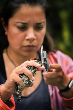 Many species of birds have been driven to extinction by human activities. Being conspicuous elements of the ecosystem, they have been considered as indicators of ecological health.[117] They have also helped in gathering support for habitat conservation.[118] Bird conservation requires specialized knowledge in aspects of biology and ecology, and may require the use of very location-specific approaches. Ornithologists contribute to conservation biology by studying the ecology of birds in the wild and identifying the key threats and ways of enhancing the survival of species.[119] Critically endangered species such as the California condor have had to be captured and bred in captivity. Such ex situ conservation measures may be followed by reintroduction of the species into the wild.[120]