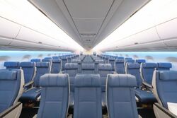 Main Cabin (Economy Class) is available on all aircraft with seats ranging from 17 to 18.6 inches (43 to 47 cm) wide and 30 to 33 inches (76 to 84 cm) of pitch. The main cabin on some aircraft have an articulating seat bottom where the seat bottom moves forward in addition to the seat back tilting backwards when reclining.[61][71]