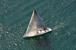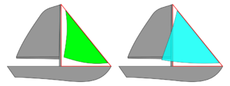 A genoa sail is a type of large jib or staysail that extends past the mast and so overlaps the main sail when viewed from the side,[1] sometimes eliminating it. It was originally called an "overlapping jib" and later a genoa jib. It is used on single-masted sloops and twin-masted boats such as yawls and ketches. Its larger surface area increases the speed of the craft in light to moderate winds; in high wind, a smaller jib is usually substituted, and downwind a spinnaker may be used.