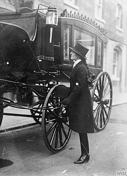 A funeral director in the UK will usually take on most of the administrative duties and arrangement of the funeral service, including flower arrangements, meeting with family members, and overseeing the funeral and burial service. Embalming or cremation of the body requires further training.[20] Funeral directors also often take the roll of collecting the deceased from the house or hospital, and bringing them into their care to dress and encoffin for the funeral.[21][22]