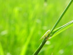 Poa pratensis is among the food plants of the caterpillars of the meadow brown (Maniola jurtina), gatekeeper (Pyronia tithonus), and pepper-and-salt skipper butterflies; the common sun beetle (Amara aenea) (adults feed on the developing seeds), Eupelix cuspidata of the leafhopper family, and Myrmus miriformis, a grassbug (feeds on young blades and developing seeds).[5]