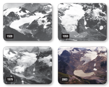 Following the Little Ice Age's end around 1850, glaciers around the Earth have retreated substantially. A slight cooling led to the advance of many alpine glaciers between 1950 and 1985, but since 1985 glacier retreat and mass loss has become larger and increasingly ubiquitous.[24][25][26]