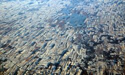On Earth, 99% of glacial ice is contained within vast ice sheets (also known as "continental glaciers") in the polar regions, but glaciers may be found in mountain ranges on every continent other than the Australian mainland, including Oceania's high-latitude oceanic island countries such as New Zealand. Between latitudes 35°N and 35°S, glaciers occur only in the Himalayas, Andes, and a few high mountains in East Africa, Mexico, New Guinea and on Zard-Kuh in Iran.[2] With more than 7,000 known glaciers, Pakistan has more glacial ice than any other country outside the polar regions.[3][4] Glaciers cover about 10% of Earth's land surface. Continental glaciers cover nearly 13 million km2 (5 million sq mi) or about 98% of Antarctica's 13.2 million km2 (5.1 million sq mi), with an average thickness of ice 2,100 m (7,000 ft). Greenland and Patagonia also have huge expanses of continental glaciers.[5] The volume of glaciers, not including the ice sheets of Antarctica and Greenland, has been estimated at 170,000 km3.[6]