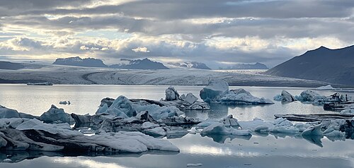 Glaciers are present on every continent and in approximately fifty countries, excluding those (Australia, South Africa) that have glaciers only on distant subantarctic island territories. Extensive glaciers are found in Antarctica, Argentina, Chile, Canada, Alaska, Greenland and Iceland. Mountain glaciers are widespread, especially in the Andes, the Himalayas, the Rocky Mountains, the Caucasus, Scandinavian mountains, and the Alps. Snezhnika glacier in Pirin Mountain, Bulgaria with a latitude of 41°46′09″ N is the southernmost glacial mass in Europe.[40] Mainland Australia currently contains no glaciers, although a small glacier on Mount Kosciuszko was present in the last glacial period.[41] In New Guinea, small, rapidly diminishing, glaciers are located on Puncak Jaya.[42] Africa has glaciers on Mount Kilimanjaro in Tanzania, on Mount Kenya, and in the Rwenzori Mountains. Oceanic islands with glaciers include Iceland, several of the islands off the coast of Norway including Svalbard and Jan Mayen to the far north, New Zealand and the subantarctic islands of Marion, Heard, Grande Terre (Kerguelen) and Bouvet. During glacial periods of the Quaternary, Taiwan, Hawaii on Mauna Kea[43] and Tenerife also had large alpine glaciers, while the Faroe and Crozet Islands[44] were completely glaciated.