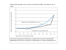 Studies show that a high BAC increases the risk of collisions whereas it is not clear if a BAC of 0.01–0.05% slightly increases or decreases the risk.[28][29]