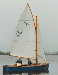 Over time the two terms have been used with some interchangeability. While a true gaff rig is with the gaff at an angle to the mast, small boats such as the Heron, the Mirror dinghy, both designed by Jack Holt, and other small sailing dinghies have small, light gaffs which are raised to the vertical position by a single halyard fixed close to the midpoint of the gaff.