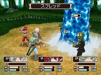 As with previous entries in the Tales series, Tales of Innocence is an action role-playing game. The player navigates overworld and town environments, and enters a separate arena-like area during battle. The characters and environments are represented using full 3D graphics and models.[1][2] Characters gain experience levels using experience points, gained by completing quests and fighting. Side-quests separate from the main narrative can be taken through guilds in various parts of the overworld. As the player completes side-quests, guilds level up with the character, providing extra materials and items. Guilds level up as players complete quests for them, and some of the game's dungeons are directly linked to guild quests. Guilds are also used to communicate with other players using the Nintendo DS' wireless function. Multiplayer allows two players to cooperate in battle.[3] During navigation, extra plot-related or casual conversations with characters called Skits can be triggered by the player.[2] Some character interactions used a choice-based "bonding" system, where a dialogue choice is offered while conversing with another character or during certain story scenes: choosing the right response increases the bond with a character, granting both items and special boons in battle.[4]