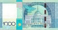 1,000 tenge banknote issued in 2011 to commemorate Kazakhstan's Presidency of the Organisation of the Islamic Conference (back).