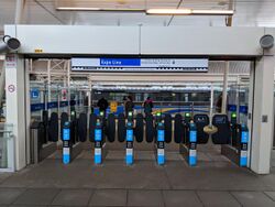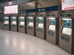 The first faregates in the United States were installed experimentally in 1964 at Forest Hills and Kew Gardens Long Island Rail Road stations in Queens;[4] the first systemwide installation was on Illinois Central Railroad (IC) in 1965 for its busy Chicago commuter service (today's Metra Electric.) Financed entirely from private funds, AFC was expected to reduce operating costs by decreasing on-board crew sizes and eliminating station agents at all but the busiest stations. Cubic’s IC system featured entry-exit swipes (NX) to enforce zonal fare structures, checks against fraud, used ticket collection, and ridership/revenue data collection capabilities.[5] It served as a prototype for the San Francisco Bay Area Rapid Transit (BART),[6] Washington Metropolitan Area Transit Authority (WMATA),[7] and Philadelphia’s Port Authority Transit Corporation (PATCO) Lindenwold Line NX-zonal AFC systems.[8] These railroad-style systems required complex computer data processing on faregates or remotely on a central computer, and thus were not suitable for buses. Similar systems are still in use on Japan and Taiwan’s commuter railroads, and the London Underground.[9]