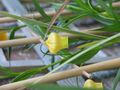 Yellow-flowered form of plant: cultivated specimen trained on small bamboo trellis to support lax growth.