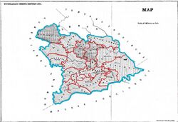 In 1867, the State was divided into five divisions and seventeen districts, and subedars (governors) were appointed for the five Divisions and talukdars and tehsildars for the districts. The judicial, public works, medical, educational, municipal, and police departments were re-organized.[24] In 1868, sadr-i-mahams (Assistant Ministers) were appointed for the Judicial, Revenue, Police, and Miscellaneous Departments.[25]