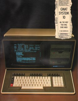 In 1979, Gnat teamed up with Data Technology Industries (DTI) of San Leandro, California, to develop the Gnat System 10, an all-in-one microcomputer based on the Zilog Z80 microprocessor.[10] The System 10 featured 65 KB of RAM; a built-in CRT supported by a video card that could output 80-column-by-25-row text; two 700-KB 5.25-inch floppy drives; a Selectric-style keyboard; and a hard drive interface.[11] The company sold 2,000 units of the System 10 between 1979 and 1980.[10] In 1981 Gnat signed an agreement with the Maryland-based American Peripheral Systems to supply the latter with $12 million of Gnat's microcomputers in exchange for dealership representation in 20 states and Washington, D.C., over a five-year contract.[1]