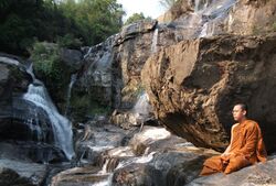 The Sangha or community of ordained Buddhist bhikkhus (Pali bhikkhu, like Sanskrit bhikṣu, means 'beggar; one who lives by alms'[2]), and original bhikkhunīs (nuns) were founded by Gautama Buddha during his lifetime over 2500 years ago. This communal monastic lifestyle grew out of the lifestyle of earlier sects of wandering ascetics, some of whom the Buddha had studied under. It was initially fairly eremitic or reclusive in nature. Bhikkhus and bhikkunis were expected to live with a minimum of possessions, which were to be voluntarily provided by the lay community.[3] Lay followers also provided the daily food that bhikkhus required, and provided shelter for bhikkhus when they needed it.[3]