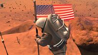 An artist's conception, from NASA, of an astronaut planting a US flag on Mars.
