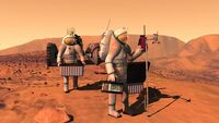 Concept art by NASA of two people in suits on Mars setting up weather equipment.[22]