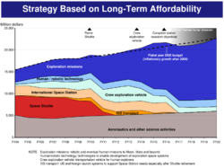 "The damage done to America and the rest of the world by unsustainable deficits is real, and any lack of zeal in facing this problem would be a mistake. In that context, this would be a good time for Congress to look again at Bush's plans for NASA to re-establish a human presence in deep space. The outgoing Republican Congress gave its Republican president too much benefit of the doubt on this undertaking. The new Congress must, at the very least, articulate more convincing reasons than have yet been heard for such a colossal expenditure."[21]