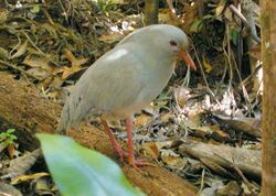 The endemic kagu,[86] agile and able to run quickly, is a flightless bird, but it is able to use its wings to climb branches or glide. Its sound is similar to the bark of a dog. It is the surviving member of monotypic family Rhynochetidae, order Eurypygiformes.[87]