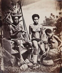 The first missionaries from the London Missionary Society and the Marist Brothers arrived in the 1840s.[16] In 1849, the crew of the American ship Cutter was killed and eaten by the Pouma clan.[17] Human cannibalism was widespread throughout New Caledonia.[18]