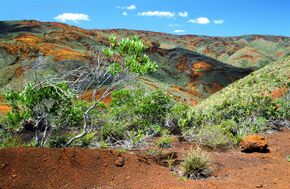 New Caledonia has its own version of maquis (maquis minier) occurring on metalliferous soils, mostly in the south.[71] The soils of ultramafic rocks (mining terrains) have been a refuge for many native flora species which are adapted to the toxic mineral content of the soils, to which most foreign species of plants are poorly suited, which has therefore prevented invasion into the habitat or displacement of indigenous plants.[80]