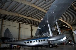Through his interest in aviation and aerospace travel, Hughes formed the Hughes Aircraft Company in 1932, hiring numerous engineers, designers, and defense contractors.[5][6](p163, 259) He spent the rest of the 1930s and much of the 1940s setting multiple world air speed records and building the Hughes H-1 Racer (1935) and the gigantic H-4 Hercules (the Spruce Goose, 1947), the largest flying boat in history with the longest wingspan of any aircraft from the time it was built until 2019. He acquired and expanded Trans World Airlines and later acquired Air West, renaming it Hughes Airwest. Hughes won the Harmon Trophy on two occasions (1936 and 1938), the Collier Trophy (1938), and the Congressional Gold Medal (1939) all for his achievements in aviation throughout the 1930s. He was inducted into the National Aviation Hall of Fame in 1973 and was included in Flying magazine's 2013 list of the 51 Heroes of Aviation, ranked at No. 25.[7]