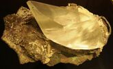 Selenite crystals sometimes will also exhibit bladed rosette habit (usually transparent and like desert roses) often with accompanying transparent, columnar crystals. Selenite crystals can be found both attached to a matrix or base rock, but can commonly be found as entire free-floating crystals, often in clay beds (and as can desert roses).[15]