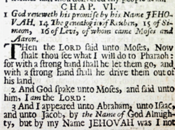"Jehovah" at Exodus 6:3[1] (King James Version)