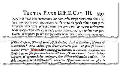 ↑"Non enim h quatuor liter [yhwh] si, ut punctat sunt, legantur, Ioua reddunt: sed (ut ipse optime nosti) Iehoua efficiunt." (De Arcanis Catholicæ Veritatis (1518), folio xliii. See Oxford English Dictionary Online, 1989/2008, Oxford University Press, "Jehovah"). Peter Galatin was Pope Leo X's confessor.