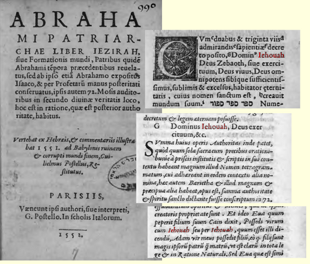 A 1552 Latin translation of the Sefer Yetzirah, using the form Iehouah for the "magnum Nomen tetragrammatum"