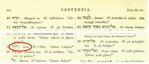 ↑For example, Gesenius rendered Proverbs 8:22 in Latin as: "Jehova creavit me ab initio creationis". (Samuel Lee, A lexicon, Hebrew, Chaldee, and English (1840) p. 143)