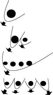Craters on Venus are kept in pristine condition, thus making their classification and impact mechanics easy to interpret. Small projectiles burn up in the atmosphere, and those that make it to the surface break into smaller pieces, creating clusters of impact craters similar in appearance to circular lunar craters. As crater size increases, the chance of breakup in the atmosphere decreases and the impact craters become more circular with central peaks from isostatic rebound of the crust. The atmosphere can flatten and slow larger meteoroids to terminal velocity and cause them to explode on impact or near the surface, showering the region in debris. The shockwave from these explosions can flatten the surrounding area for several kilometers. Large impacts create parabolic excavation cones and flows of lava-like debris.[14]