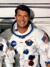 Walter Marty Schirra Jr. (/ʃɜːrˈɑː/, March 12, 1923 – May 3, 2007) was an American naval aviator, test pilot, and NASA astronaut. In 1959, he became one of the original seven astronauts chosen for Project Mercury, which was the United States' first effort to put humans into space. On October 3, 1962, he flew the six-orbit, nine-hour, Mercury-Atlas 8 mission, in a spacecraft he nicknamed Sigma 7, becoming the fifth American and ninth human to travel into space. In December 1965, as part of the two-man Gemini program, he achieved the first space rendezvous, station-keeping his Gemini 6A spacecraft within 1 foot (30 cm) of the sister Gemini 7 spacecraft. In October 1968, he commanded Apollo 7, an 11-day low Earth orbit shakedown test of the three-man Apollo Command/Service Module and the first crewed launch for the Apollo program.
