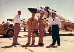 Schirra was a member of Class 20 at the Naval Test Pilot School, along with future fellow astronauts Jim Lovell and Pete Conrad, where he learned to fly numerous aircraft, including the F4D Skyray, the F11F Tiger, and the F8U Crusader. After graduation, Schirra became a test pilot at Naval Air Station Patuxent River and learned to fly the F4H Phantom to determine if it could become a carrier-based aircraft.[1]:43–46